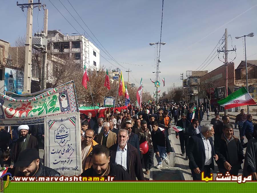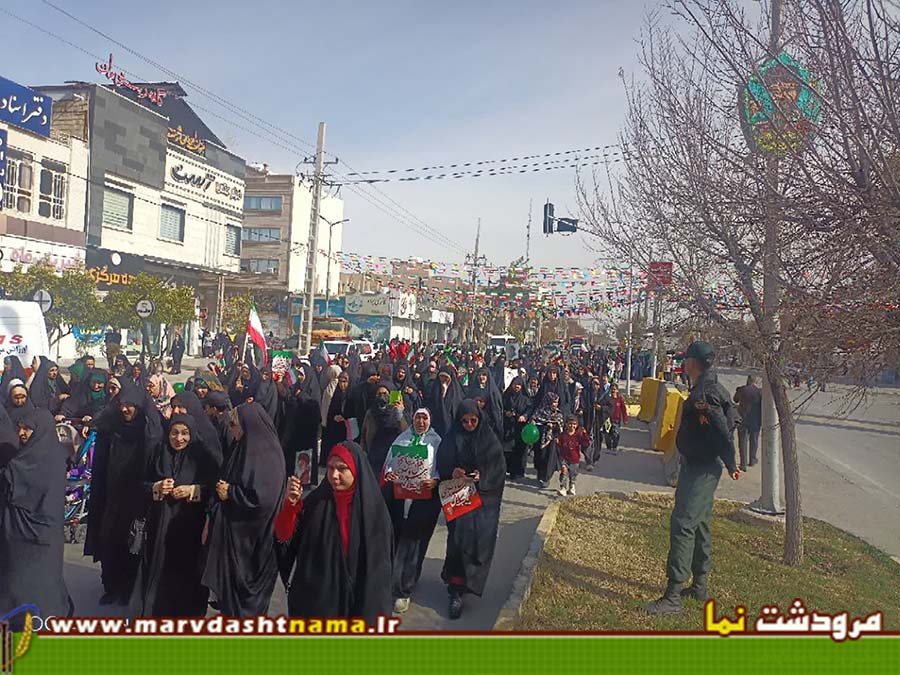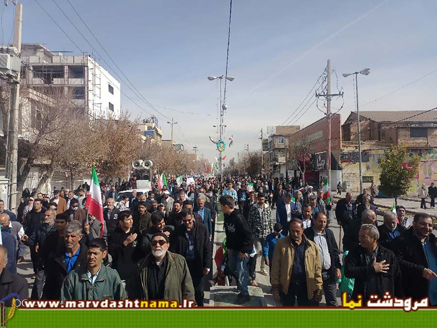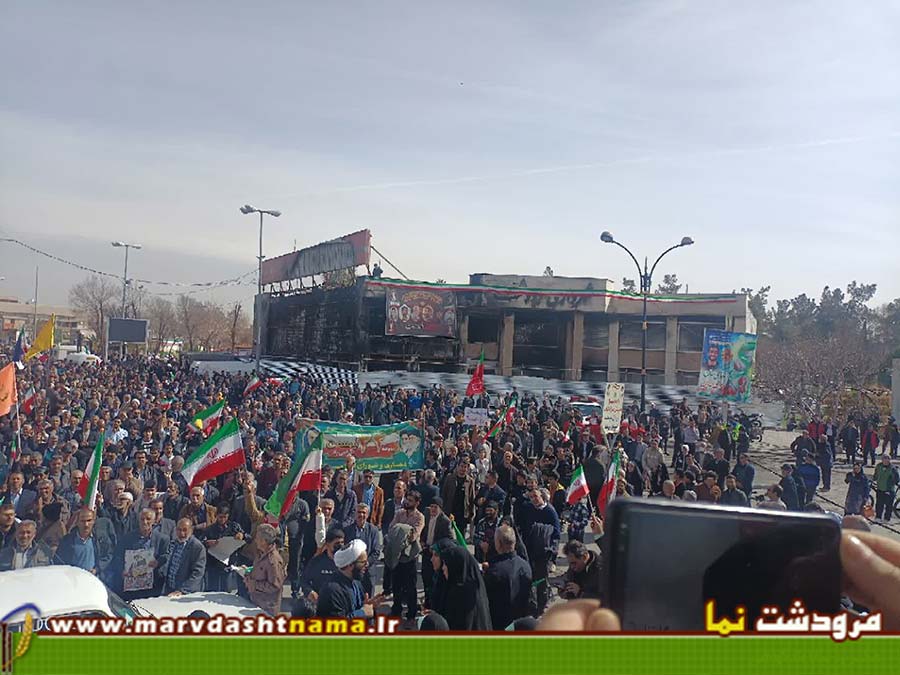 مردم آگاه مرودشت در راهپیمایی امسال که حساسیت بیشتری نسبت به سالهای قبل داشت با حضور پر رنگ خود وطن دوستی خود را بار دیگر به اثبات رساندند. بعهد از اتفاقات 18 و 19 دی ماه امسال و تخریب گسترده بانکها و اماکن دولتی توسط اغتشاشگران و همچنین تحرکات گسترده دشمن  آمریکایی در مرزهای آبی و پایگاههای خود جهت برپا نمودن یک جنگ تمام عیار با ایران اسلامی، مردم انقلابی مرودشت با درک مناسب شرایط و موقعیت کشور با حضور پرشکوه تر خود در راهپیمایی 22 بهمن امسال نسبت به سالهای گذشته حمایت خود را از سیاستهای مستقل کشور نشان دادند.