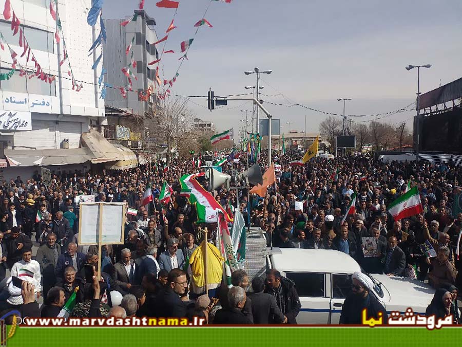 مردم آگاه مرودشت در راهپیمایی امسال که حساسیت بیشتری نسبت به سالهای قبل داشت با حضور پر رنگ خود وطن دوستی خود را بار دیگر به اثبات رساندند.