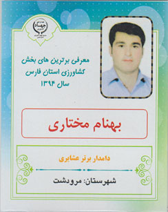 بهنام مختاری از اعضای شرکت تعاونی عشایری مرودشت بعنوان دامدار برتر عشایری استان انتخاب شد