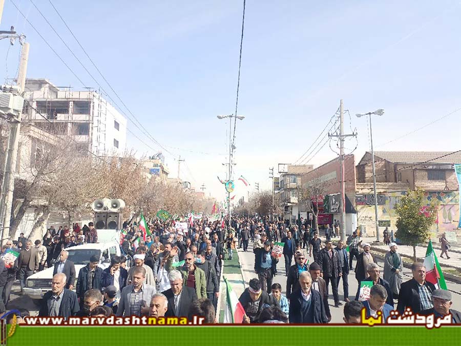 مردم آگاه مرودشت در راهپیمایی امسال که حساسیت بیشتری نسبت به سالهای قبل داشت با حضور پر رنگ خود وطن دوستی خود را بار دیگر به اثبات رساندند. بعهد از اتفاقات 18 و 19 دی ماه امسال و تخریب گسترده بانکها و اماکن دولتی توسط اغتشاشگران و همچنین تحرکات گسترده دشمن  آمریکایی در مرزهای آبی و پایگاههای خود جهت برپا نمودن یک جنگ تمام عیار با ایران اسلامی، مردم انقلابی مرودشت با درک مناسب شرایط و موقعیت کشور با حضور پرشکوه تر خود در راهپیمایی 22 بهمن امسال نسبت به سالهای گذشته حمایت خود را از سیاستهای مستقل کشور نشان دادند.