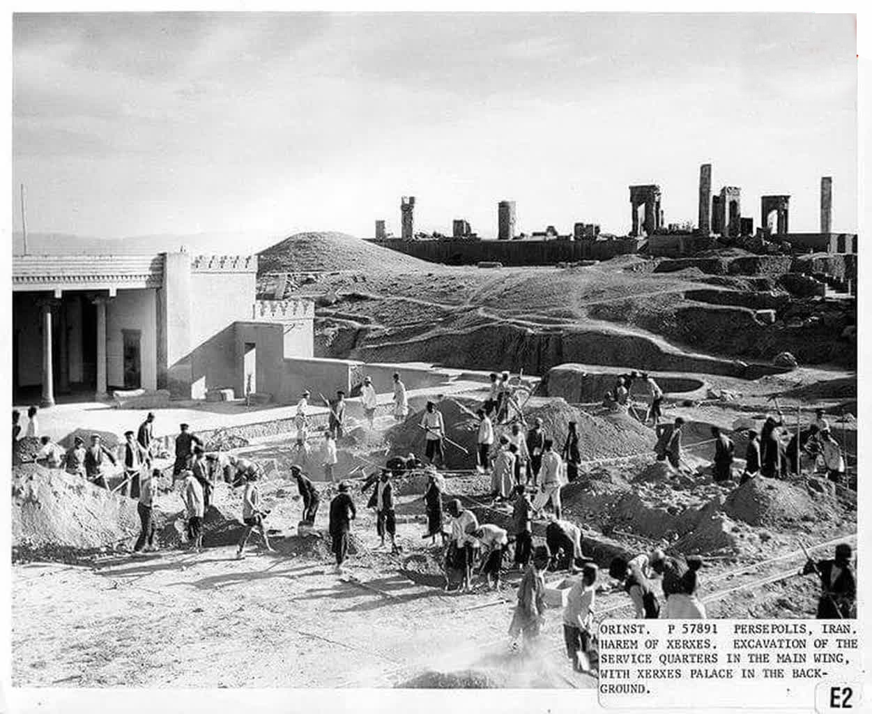 | تصویری کمتر دیده شده از کارگران شیرازی را در حال کاوش در تختجمشید و در سال 1309 هجری شمسی مشاهده می کنید. این کاوش علمی تحت نظر ارنست امیل هرتزفلد آلمانی صورت گرفت .jpg)